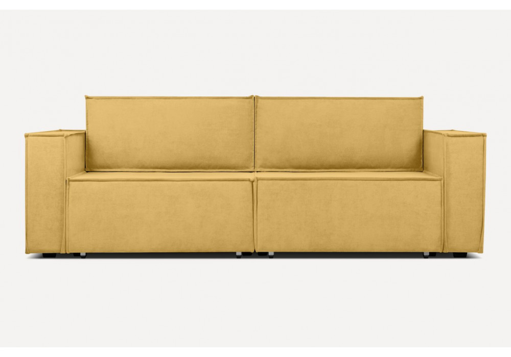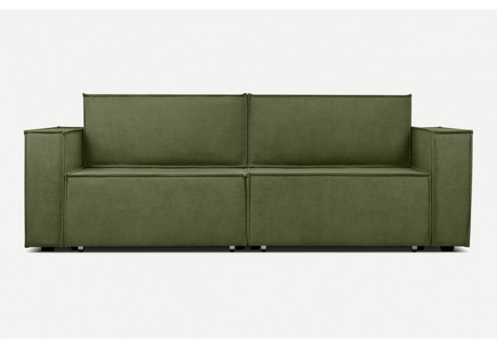 Обивка из благородного велюра и актуальная цветовая палитра будут уместны и в популярных скандинавских интерьерах, и в классических решениях. Спинку образуют две мягких объемных приставных подушки, обрамленные декоративным кантом. Шов подчеркивает силуэт и выделяет детали на общем фоне