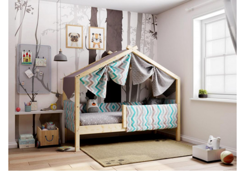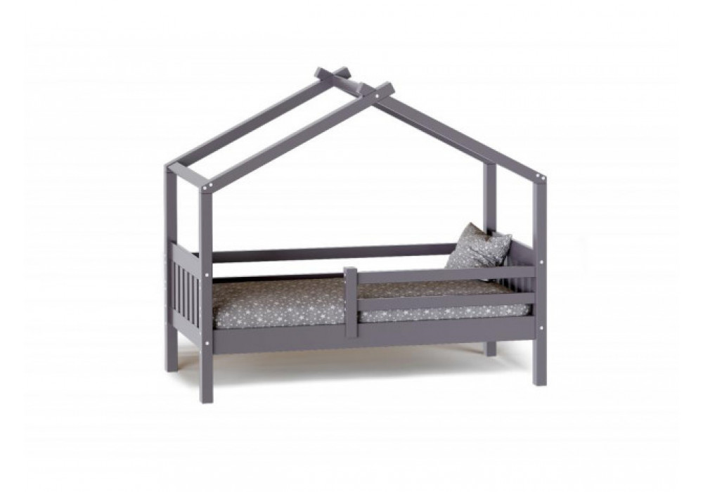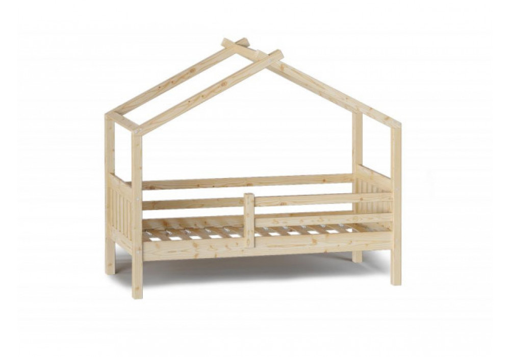 Каркас укомплектован основанием из поперечных гнутых ламелей. Головная и ножная спинки соединены стропилами, образующими крышу: если дополнить кроватку текстильными аксессуарами в виде балдахина и мягких бортиков, малыш будет ощущать себя в собственном уютном домике. В комплектацию кровати входит ортопедическое основание из гнутоклееных ламелей.
