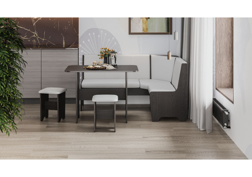 Габаритные размеры | Габаритная высота 800 Габаритная высота спинки 400 Габаритная длина 1 532 Габаритная ширина 1 132 Размеры стола Ш×Г×В: 1000×600×730 Размеры табуретов Ш×Г×В: 330×330×430 |