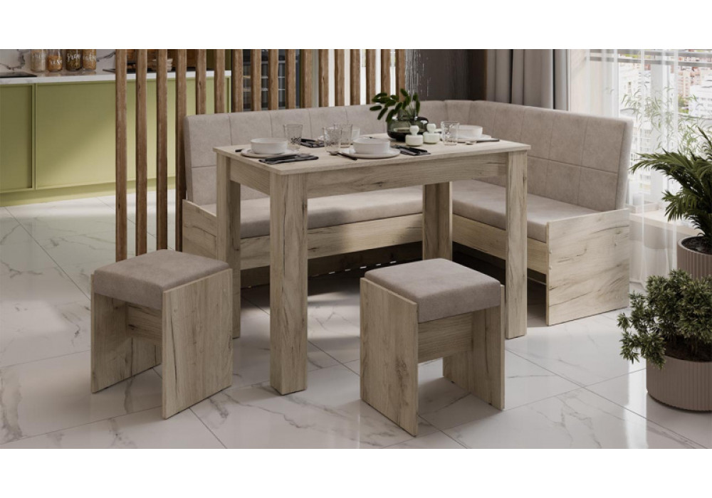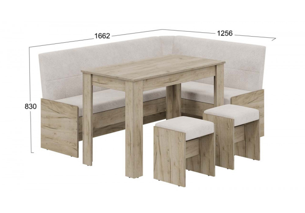 Дополнительная информация | Размеры скамьи:1662х1256х830 Размеры стола:1101×601×757 Размеры табуретов:320×354×441 |