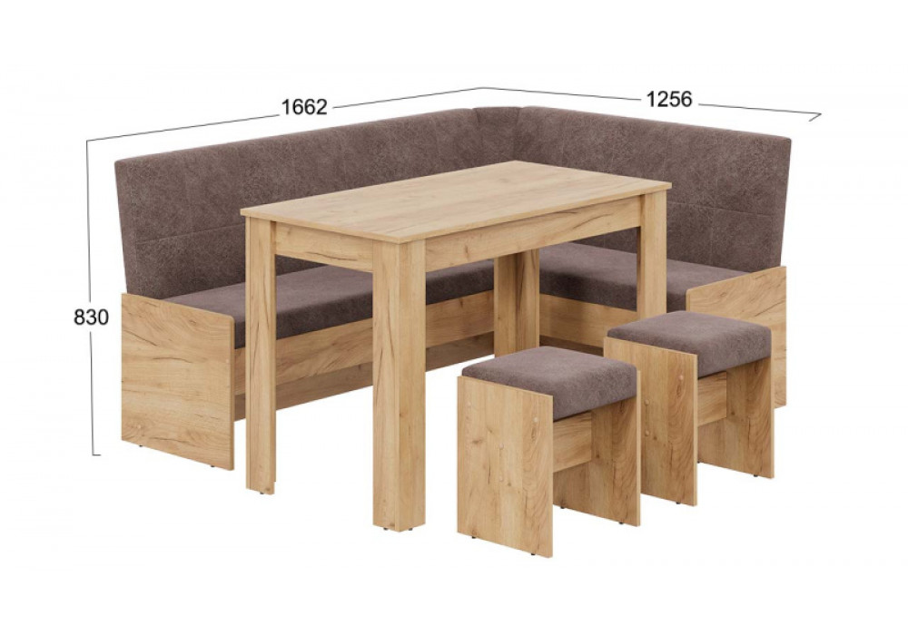 Дополнительная информация | Размеры скамьи:1662х1256х830 Размеры стола:1101×601×757 Размеры табуретов:320×354×441 |