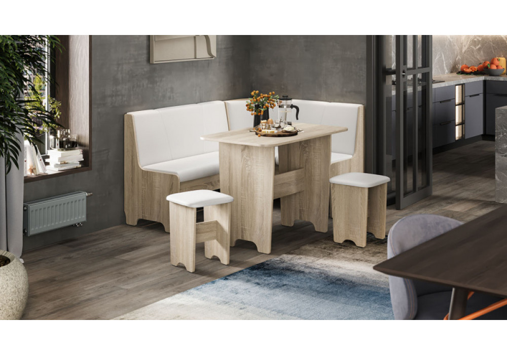 Габаритные размеры | Габаритная высота 800 Габаритная высота спинки 400 Габаритная длина 1 532 Габаритная ширина 1 132 Размеры стола Ш×Г×В: 1000×600×730 Размеры табуретов Ш×Г×В: 330×330×430 |