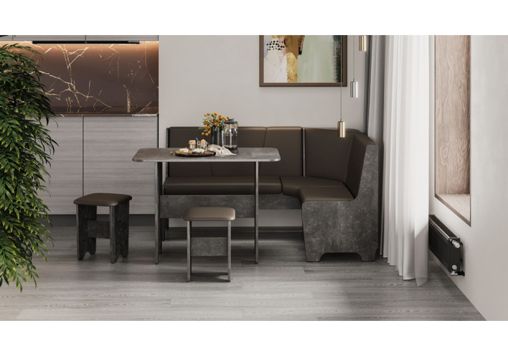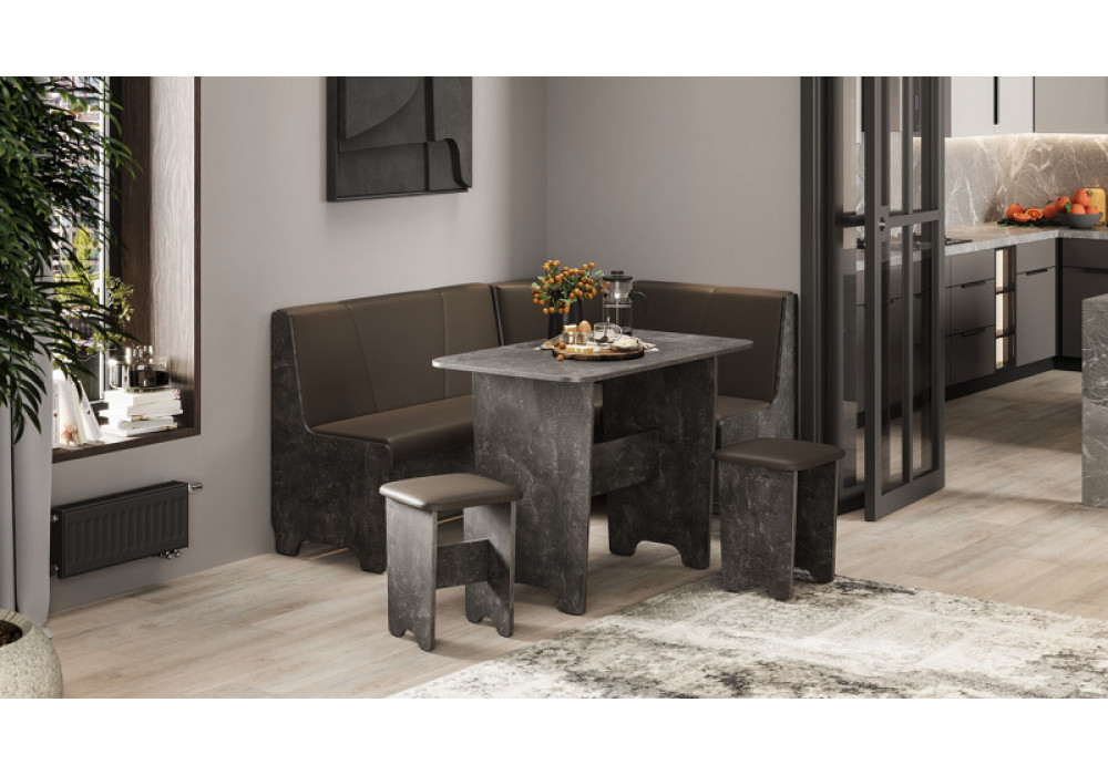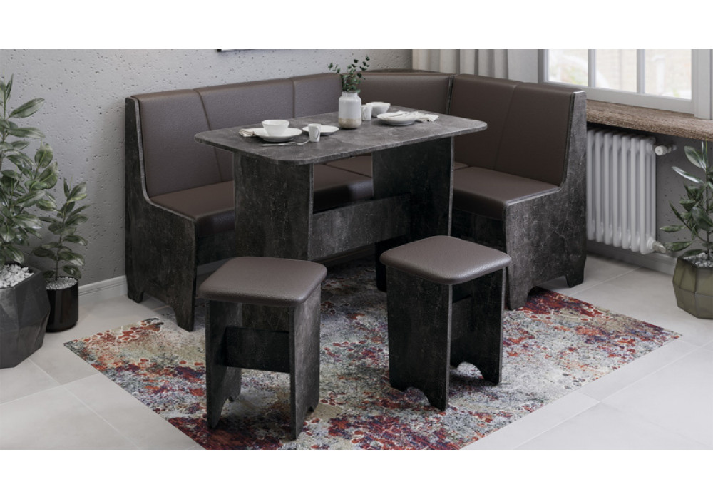 Габаритные размеры | Габаритная высота 800 Габаритная высота спинки 400 Габаритная длина 1 532 Габаритная ширина 1 132 Размеры стола Ш×Г×В: 1000×600×730 Размеры табуретов Ш×Г×В: 330×330×430 |
