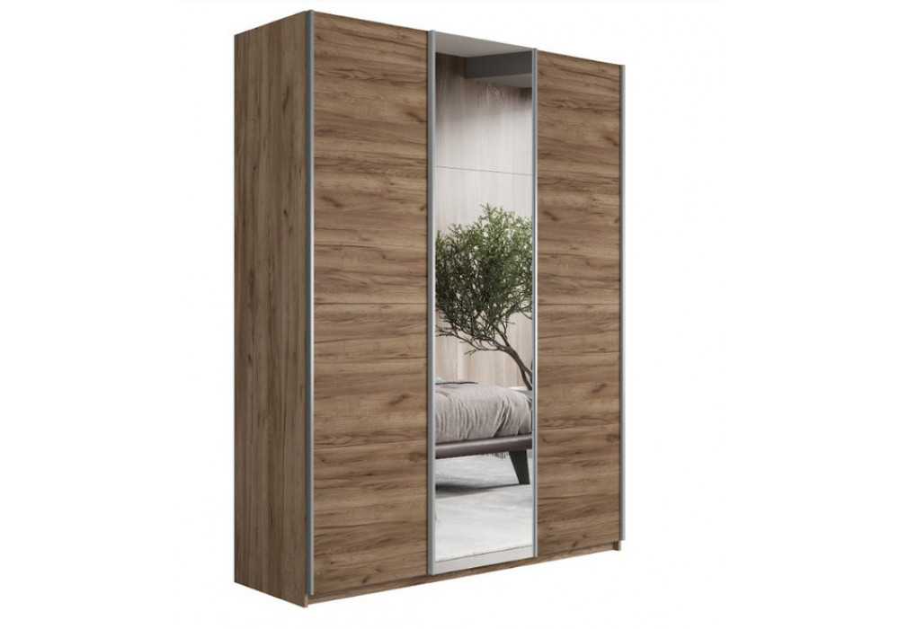 Шкаф-купе Прайм 3-х дверный (ЛДСП/Зеркало/ЛДСП) Крафт табачный